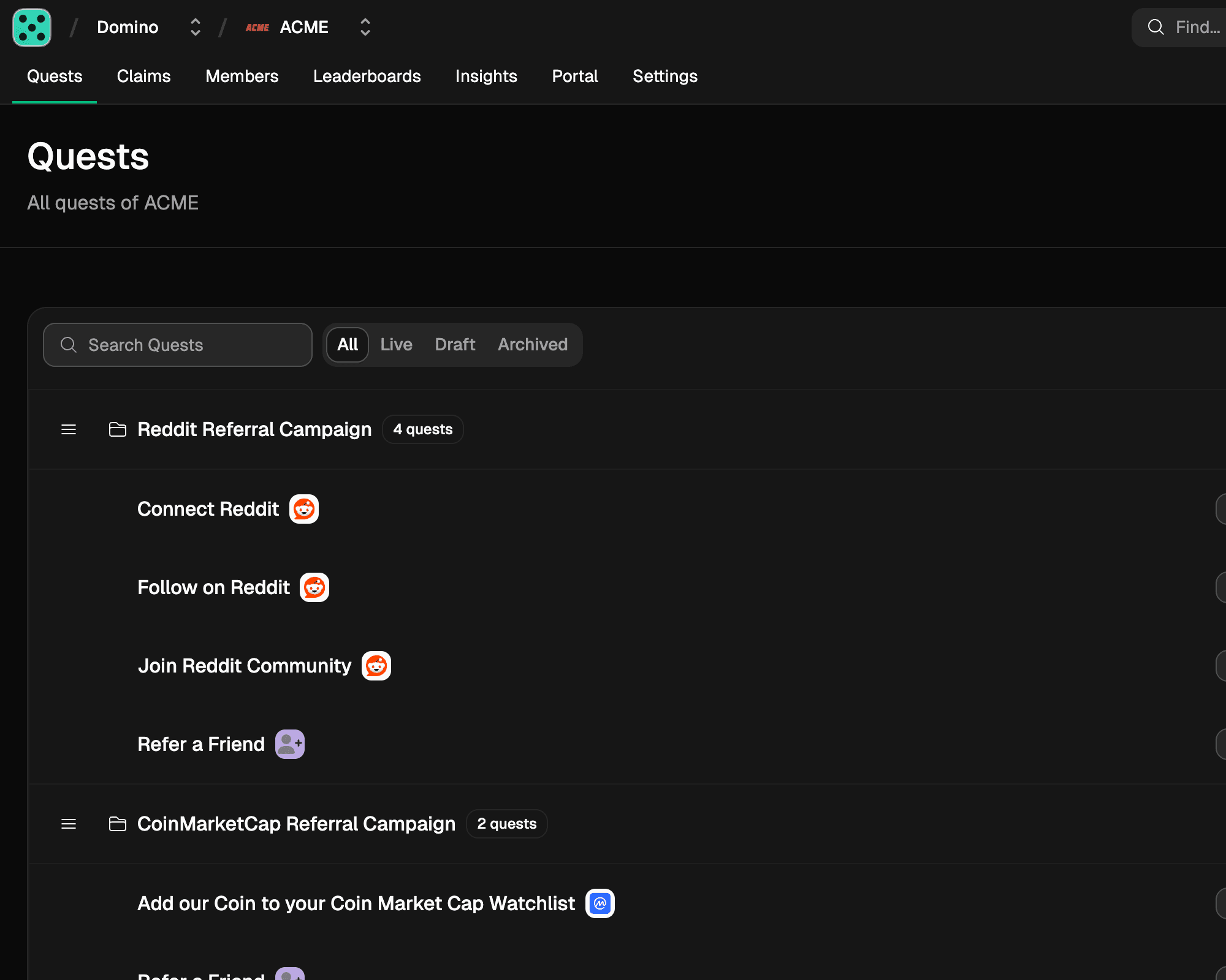 Domino is a Web3 community incentives platform to run quests, points programs, and referral loops—with automatic verification across social, on-chain, and in-app actions.