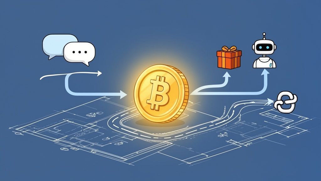 Your answer here will dictate everything else. Each goal has a different set of key performance indicators (KPIs) you can actually track. If you're chasing new users, you'll be obsessing over new wallet connections and referral rates. If it's all about on-chain action, you’ll be watching daily active users (DAU) and specific smart contract interactions like a hawk. And for community health? You're probably looking at things like social sentiment and how lively your Discord is.